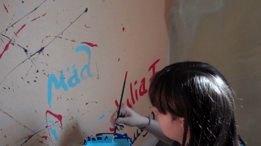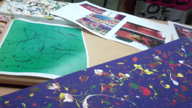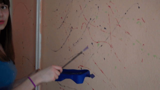 An jedem Aktionstag müssen wir zuvor alle Tische und Stühle aus dem Zimmer räumen und nach den Säuberungsarbeiten, wie Malerrollen auswaschen oder Farbflecken entfernen, wieder in den Raum stellen, da am nächsten Tag dort wieder Unterricht stattfindet. Da die Wände in dem Zimmer zuvor Grün gestrichen waren, mussten wir zunächst mit weißer Farbe die Wände überstreichen und überdecken, da sonst unsere helle gelbe Farbe nicht decken und grüne Farbe durchschimmern würde. In Zukunft wird es unsere Aufgabe sein, die zwei geweißten Wände in einem hellen Gelb zu streichen und diese mit verschiedenen Farben in Blau, Grün, Rot und Violett bunt mit Action-Painting-Technik zu bespritzen. Später werden die zwei Wände noch mit Dekoaccessoires verziert. Die anderen zwei Wände des Raumes werden in einem hellen Beigeton gestaltet. Im letzten Schritt geht es darum, das passende Mobiliar für unsere Chillout-Lounge zu finden.
