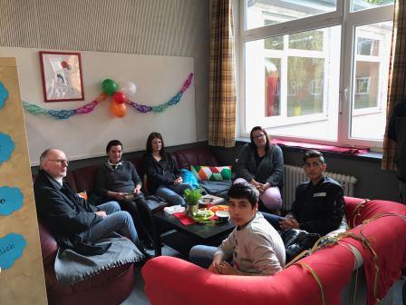 Die SV hatte Einladungen entworfen, verteilt und für Tee und Kekse gesorgt. Am Nachmittag des 21. Dezember 2017 füllte sich dann die ChillLounge mit interessierten Schüler, und wir trafen einen sehr interessanten jungen Mann. Zu Besuch war Akbar Husseini, der vor einigen Jahren alleine von Afghanistan nach Deutschland flüchtete. Gespannt und ergriffen hörten wir ihm zu. Anschließend konnten die SchülerInnen Fragen stellen und Herr Husseini beantwortete alle. Auf die Frage: „Was können wir für die Geflüchteten tun?“, gab es eine Antwort, die uns alle zum Nachdenken brachte. „Habt Geduld mit ihnen, gebt ihnen Zeit.“ Die bewegende Geschichte von Akbar Husseini kann übrigens jede/r nachlesen, in dem Buch „Bloß nicht weinen, Akbar.“