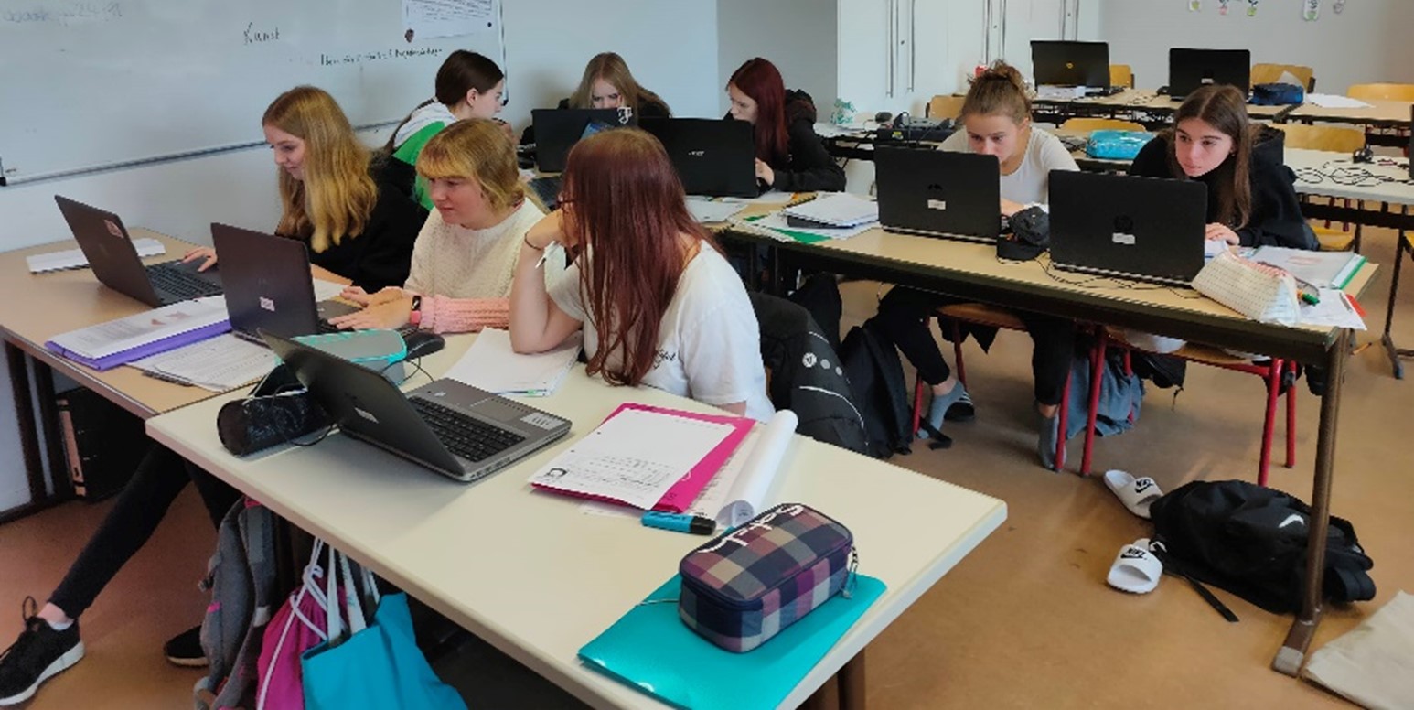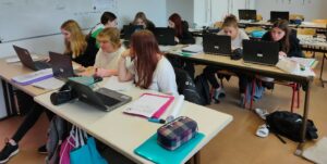 Letze Woche kam dann der große Augenblick: Alle neunten Klassen mussten zum Probeprojekt antreten. Alle gespendeten Notebooks kamen zum Einsatz und auch unsere alten Geräte mussten herhalten. Nach fünf Tagen intensiver Arbeit mit den Notebooks wurden die Ergebnisse mit einer PowerPoint-Präsentation vorgezeigt. Die gespendeten Notebooks hatten sich bestens bewährt: Alle Geräte liefen ohne Probleme in unserem WLAN und die Ergebnisse konnten sich sehen lassen.
