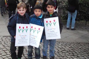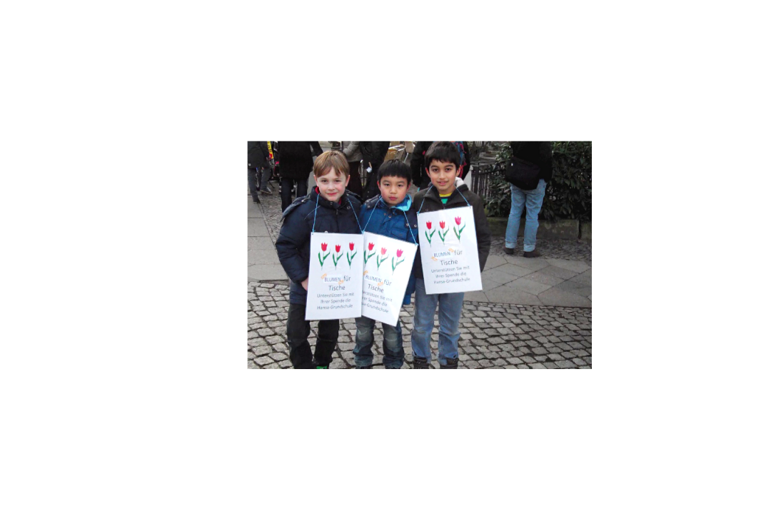Zahlreiche Passanten in Berlin-Moabit staunten am Valentinstag 2014 nicht schlecht. An drei Standorten trafen sie auf Kinder, die sie um eine Spende für die Hansa- Grundschule in Berlin Moabit baten. Als Dankeschön erhielt jeder, der gespendet hatte, eine Tulpe. Die Kinder waren sofort und mit Feuereifer dabei. Sie wollten gar nicht aufhören. Doch irgendwann waren auch die letzten Tulpen verteilt.
