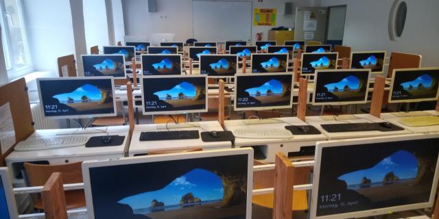 Unser Computerraum mit 32 Arbeitsplätzen konnte mit Hilfe dieser Spende mit zeitgemäßen Breitbild-Monitoren aufgewertet werden.