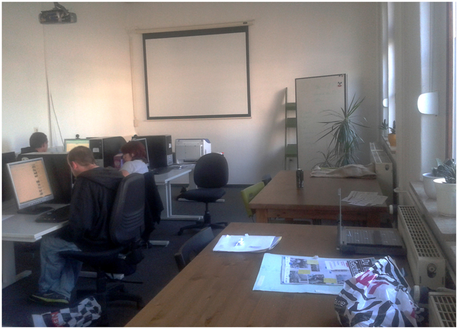 Zuerst die farbliche Auffrischung und eine richtige Grundreinigung. Wir schaffen Platz! Zum Ende des Jahres wollen wir dann auch die langsameren Computer durch bessere ersetzen. Auch die Möbel sollen moderner werden, damit wir noch kreativer arbeiten können.