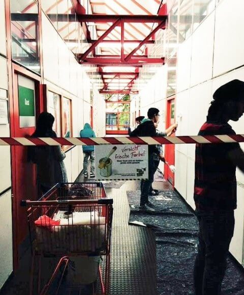 Die Vorbereitung: Das Material für diese Aktion (Farbe, Material,…) wurde im Vorhinein besorgt; Die 6 Doppelstunden selber liefen nach dem selben Muster ab; zunächst einmal teilen wir die Schüler(innen) der Gruppe verschiedenen Aufgabenbereichen zu; die Abkleber kleben schwarze Metallschienen, fest montierte Schilder, ab; die Streicher streichen; der Materialdienst organisiert das Material (Kreppbank, Rollen, Putzutensilien, …) und sorgt dafür, dass das gesamte Material auch wieder in der Renovierungskiste landet; der Protokollant hält die Arbeitsschritte und das Ergebnis schriftlich fest.; alle Schüler(innen) helfen am Ende beim aufräumen und säubern. Unsere Arbeitsschritte: