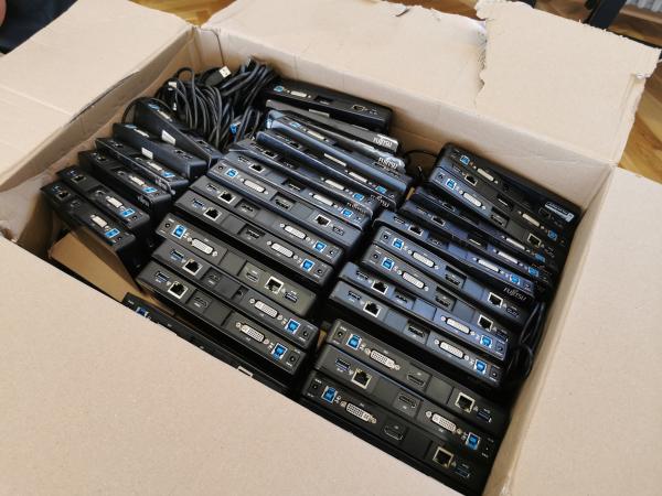 Mit den gespendeten Dockingstationen können wir nun einige unserer Geräte einfacher nutzen, indem wir sie an größere Monitore anschließen und dabei viel weniger „Kabelsalat“ haben, als bisher.