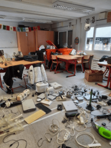 Wir wollen einen wichtigen Beitrag zum Umweltschutz leisten und auch andere Menschen dafür begeistern! Durch eine Expertin von „Das macht Schule“ haben wir alles Wichtige über Elektroschrott und Recycling gelernt. Elektroschrott darf nicht im Hausmüll entsorgt werden – und auch nicht in der Natur! Er enthält wertvolle Rohstoffe, die nachhaltig wiederverwertet werden können. Enthalten sind aber auch Giftstoffe, die nur beim Recycling sicher entsorgt werden können. Nicht einmal die Hälfte vom Elektroschrott in Deutschland wird recycelt. Wir wollen helfen, dass sich das ändert!