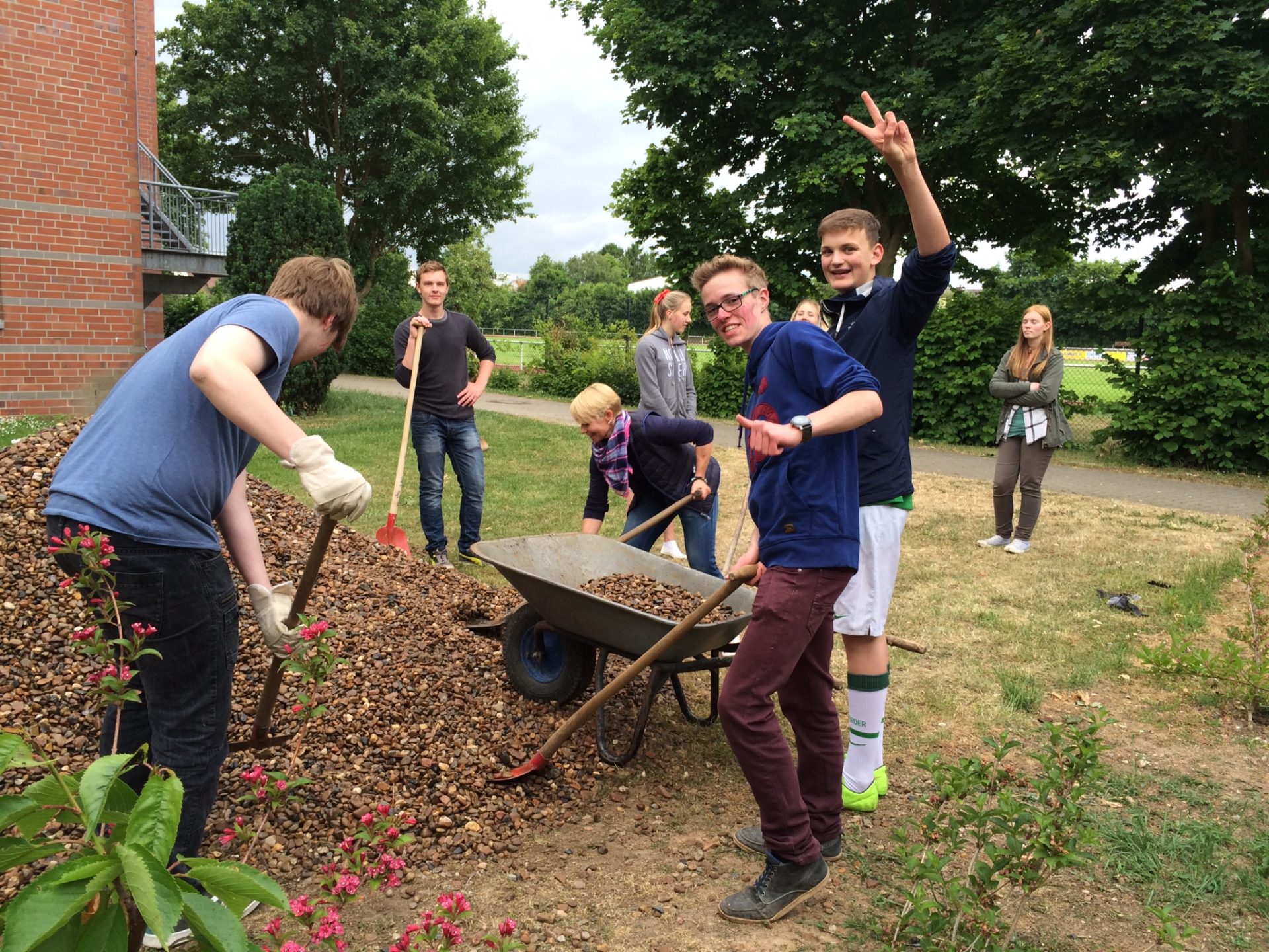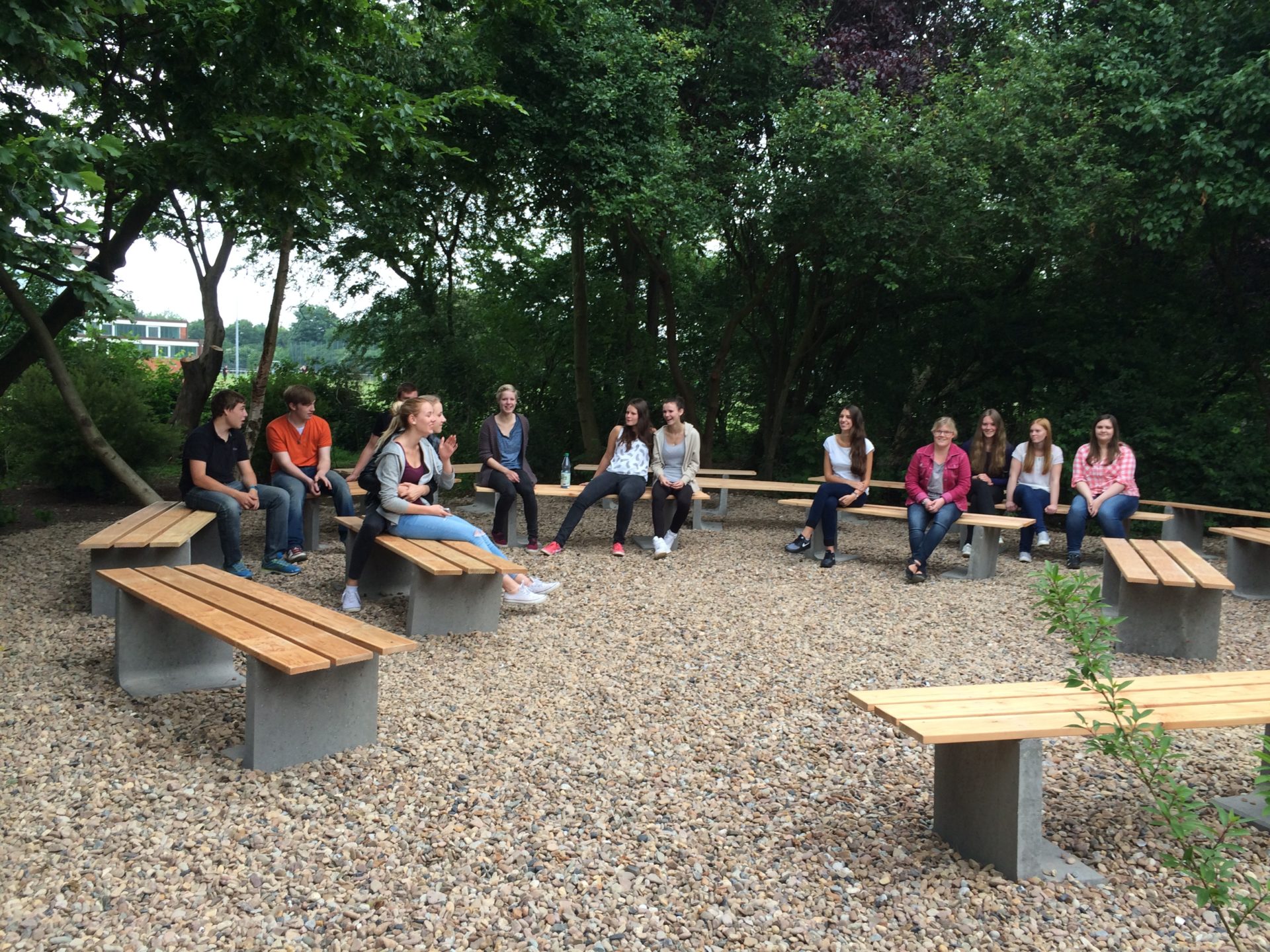In unserem Profilkurs Gesundheit und Soziales haben wir uns mit unserer Lehrerin Frau Rogge Gedanken darüber gemacht, wie wir unsere Schule noch schöner und attraktiver gestalten könnten und da kam uns die Idee, ein Grünes Klassenzimmer auf unserem Schulgelände einzurichten.