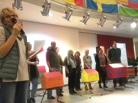 Der Weser-Kurier vom 10.12.2016 berichtet: „Neben Stellwänden, die über außerschulische Angebote informierten, standen auch Schulen als kleine Modelle vorne verteilt. Die farbigen Pappschulen sollten zeigen, was es für Schulen in Deutschland gibt. Ulrike Kompch, ihres Zeichen Leiterin einer Sprachlernklasse am Cato-Bontjes-van-Beek-Gymnasium (Cato), zeigte anhand von Schildern und den Pappschulen wie das Schulsystem in Deutschland aufgebaut ist.“ Zwei Übersetzer halfen beim szenisches Spiel und machten die Erklärungen zum Schulsystem auf Farsi und Arabisch verständlich. Auch Schüler beteiligten sich.