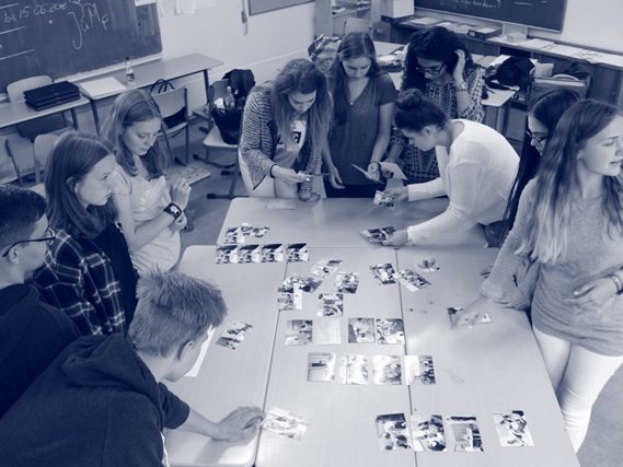 Schüler sortieren FotosDas Konzept von „JuMp“ ist ausschließlich durch die herausragende und engagierte Arbeit von 15 SchülerInnen entstanden. Sie haben nicht nur die didaktische Vorarbeit und exemplarische Projektentwicklung geleistet. Vielmehr haben sie das vorliegende Konzept redaktionell konzipiert und erarbeitet. Durch die Konzeptionierung eines Wahlprofils wurde der Rahmen geschaffen, soziales Engagement in den schulischen Alltag zu implementieren und Lernen durch Handeln zu bewirken. Und dabei haben die Schüler so gute Arbeit geleistet, dass die Schulleitung sich sofort einig war – wir bieten ein neues Profilfach an. Seit dem Schuljahr 2016/2017 läuft „JuMp“ nun als regulärer Profilkurs.