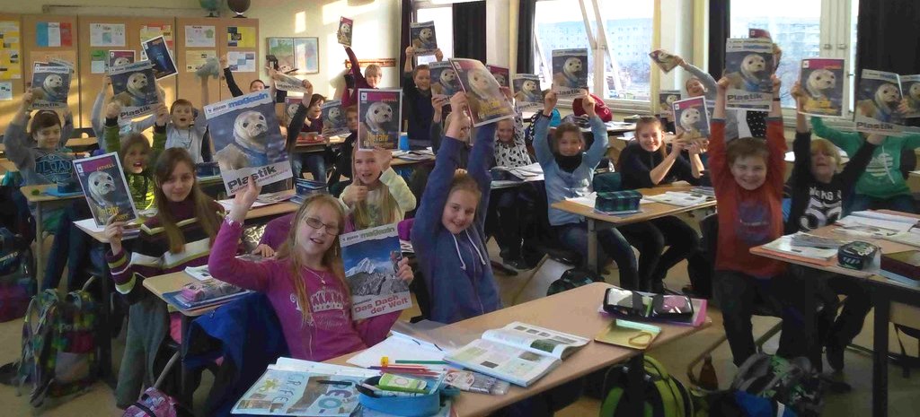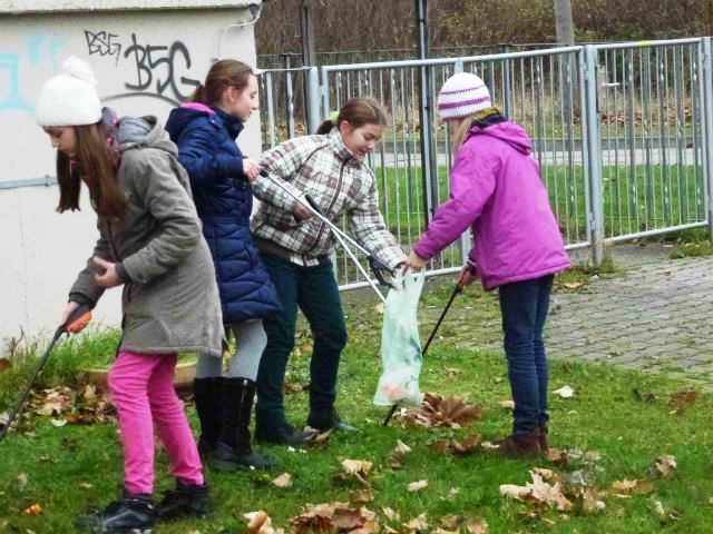 Mit der Klasse 5/3 sprachen wir anschließend über die Gefahren von Plastikmüll und schenkten ihnen Infohefte von der WWF-Jugend über Plastik in unseren Ozeanen. Auf der Dienstberatung der Lehrerschaft sowie bei dem Vorstandstreffen des Elternrates stellten wir die Projekte von „Jung-Aktiv-Nachhaltig!“ vor. Mit der Schulleitung entwickelten wir die Idee, dass zukünftig Klassen mit Unterrichtsausfall sich das Müllbefreiungsmaterial mit Greifern, Handschuhen und Beuteln ausleihen können und damit unseren Stadtteil bereinigen.