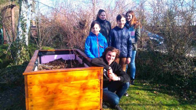 Viele Schülerinnen und Schüler, Eltern und Lehrerinnen und Lehrer sollten beim Bau der Hochbeete dabei sein, und so entschieden wir uns für den Tag der offenen Tür der Max-Klinger-Schule am 23. Januar 2016. Mit dabei waren die Mitglieder der Projektgruppe, interessierte Eltern, Lehrerinnen und Lehrer, Schülerinnen und Schüler, ein Vertreter des Jugendparlamentes und drei Vertreterinnen und Vertreter des Ortsverbandes der SPD, mit denen wir zukünftig gemeinsame Aktionen durchführen möchten. Neben dem Errichten und Befüllen der Beete wurde auch ein Rucksack von Vaude verlost. Diesen hatte uns das Unternehmen geschenkt, damit wir mit dem Erlös unsere Projekte finanzieren konnten. In der Woche zuvor und am Tag der offenen Tür selbst haben wir durch den Verkauf der Lose 110 Euro eingenommen. Wenige Tage später war Leipzig Fernsehen bei uns zu Gast, um über School Gardening und die Müllbekämpfung zu berichten. Zukünftiges: Wenn alle Beete mit Kompost und anderem gefüllt sind und der Frühling anbricht, können sich die fünften Klassen aussuchen, welche Nahrungsmittel sie in ihrem Beet anbauen möchten. Um eine dauerhafte Nutzung der Hochbeete zu gewährleisten, soll „School Gardening“ zu einem Ganztagsangebot werden, für das sich auch Schülerinnen und Schüler aus anderen Klassen melden können.