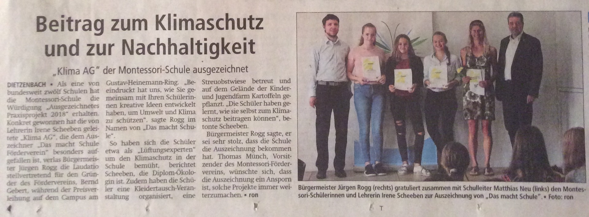 Beeindruckt hat uns, wie Sie gemeinsam mit Ihren Schülerinnen kreative Ideen entwickelt haben, um Umwelt und Klima zu schützen. Sie haben beispielsweise eine Streuobstwiese betreut und Kartoffeln gepflanzt. Die Schülerinnen haben selbstständig ein Kleidertausch-Event organisiert, mit allem was dazu gehört. So eine Veranstaltung eigenständig zu planen, umzusetzen und am Ende den Erfolg zu sehen, ist eine wertvolle Erfahrung, die wichtige Kompetenzen fördert. Die Schülerinnen haben gelernt, was sie selbst zum Klimaschutz beitragen können. Das macht Lust auf mehr! Ihre Schule lebt vor, wie einfach Nachhaltigkeit funktioniert – dafür zeichnen wir Sie aus. Das Praxisprojekt des Montessori Campus Dietzenbach ist ein Vorbild für ganz Deutschland.