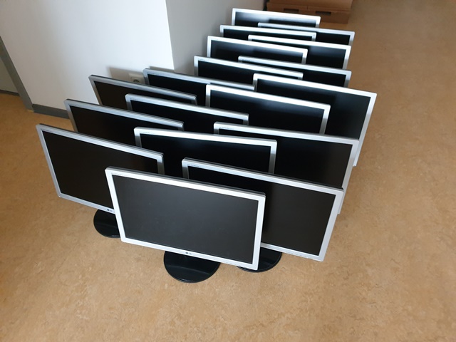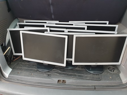 verladen web klein 1Die PCs wurden mit Schülern abgeholt, an einem Lernort bereits eingerichtet und an einem zweiten Lernort wurde gerade damit begonnen, die veralteten PCs gegen neue auszutauschen. Während gut die Hälfte der gespendeten PCs nun bereits einsatzbereit sind, fällt bei diesen bereits sehr deutlich auf, dass der überwiegende Teil der Bildschirme (Baujahr 1999 – 2006; Größe 18 / 19 Zoll) wenig zum Arbeiten an den neuen PCs einladen. – Und dabei haben wir zunächst nur die besseren Bildschirme angeschlossen.