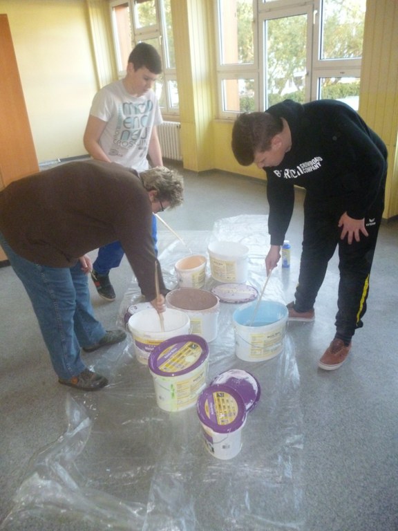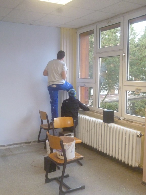 Dies sollte sich endlich ändern, denn Kunst als Fach, das den meisten Schülern Spaß bereitet, sollte auch endlich in einer schönen und angenehmen Atmosphäre stattfinden können. Vor den Ferien halfen alle Schüler der Klasse den Raum leer zu räumen, damit die Schüler, die sich als Maler beweisen wollten, an den beiden Ferientagen gleich loslegen konnten. Drei Schüler und zwei Lehrer gaben letztlich ihr Bestes und gaben dem Raum ein neues Aussehen, wie man es sich schöner kaum vorstellen kann. Verschiedene Farb- und Hell-Dunkelkontraste wurden genutzt, um die Wirkung von Farben direkt im Raum verdeutlichen zu können. Der Raum wirkt nun viel heller, freundlicher, farbenfroher und bietet nun auch endlich eine Lernatmosphäre in der man nicht nur kreativ werden, sondern sich auch einfach wohl fühlen kann. Zudem wurde ein neues Konzept für den Sitzplan entwickelt, der nun erprobt werden soll.