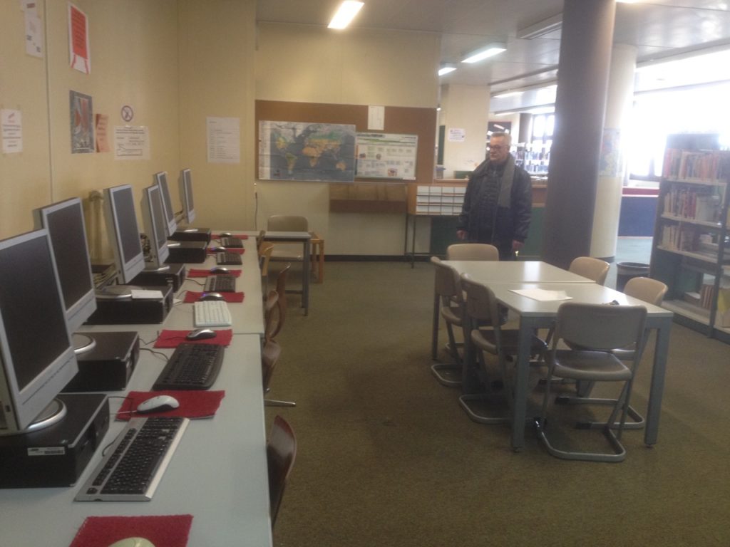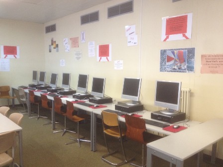 Wie Sie auf den Fotos sehen können, haben wir inzwischen die Monitore, die wir durch Ihre Vermittlung für unsere Mediothek erhalten haben, anschließen und in Funktion bringen können. Die Medienkompetenzen, wie etwa Suchen, Verarbeiten, Aufbewahren, aber auch Auswerten, Bewerten Speichern und Abrufen, können nun gezielt geübt und durchgeführt werden. Die Überlassung der Monitore trägt überdies maßgeblich dazu bei, unsere Schüler auch bei ihrem mittleren Schulabschluss (MSA) zu unterstützen.
