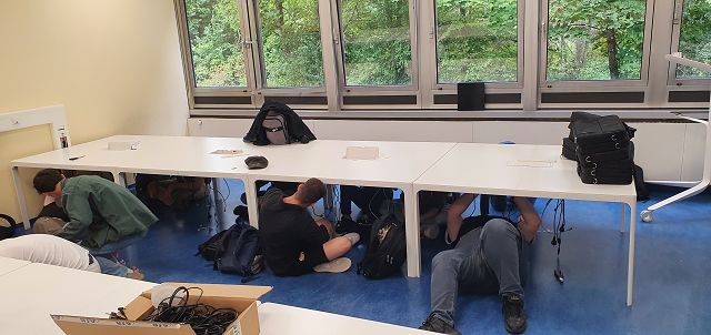 Die SuS der IT-Klasse haben unter Anleitung von Herrn Stadler den Raum neu verkabelt und die Geräte eingerichtet.