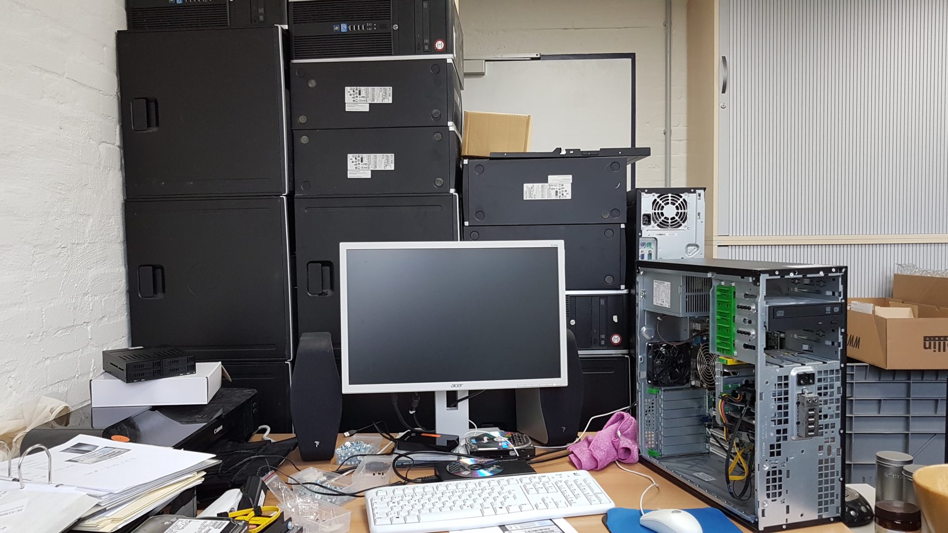 In mehreren Etappen wurden 50 PCs und 70 Monitore vom Spender Hamburg Wasser geholt und zunächst im Technik-Büro gelagert. Zuerst sind ca 20 Monitore im gesamten Schulgebäude durch neuere, größere Geräte ersetzt worden. Da aus Datenschutzgründen die Festplatten aus den PCs ausgebaut und gelöscht übergeben wurden, ist einiger Aufwand notwendig, um die PCs zum Einsatz zu bringen. Die Schulleitung hat außerdem der Vorschlag zugestimmt, schnellere SSD-Festplatten einzubauen, um die PCs schneller zu machen. Dafür wurden 50 neue SSD-Platten bestellt. Diese werden nun mit Windows 10 versehen und eingebaut. Zusätzlich wird die „alte“ Festplatte als Datenspeicher wieder eingebaut.