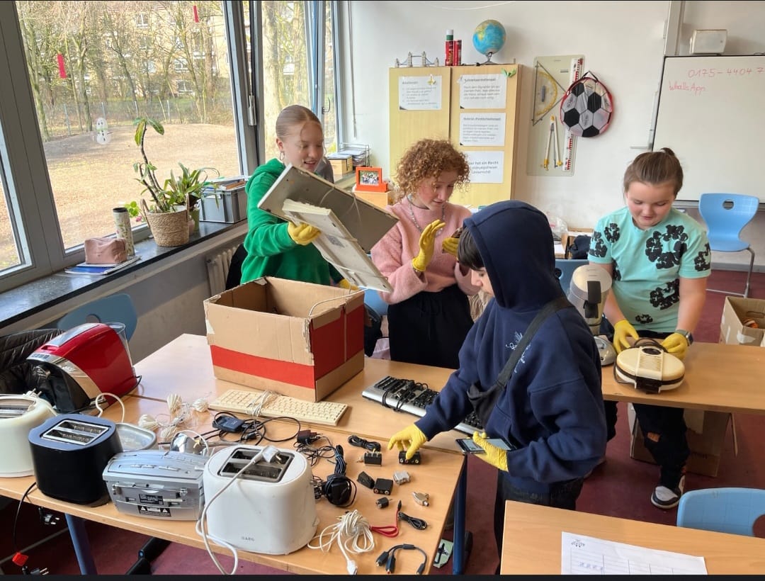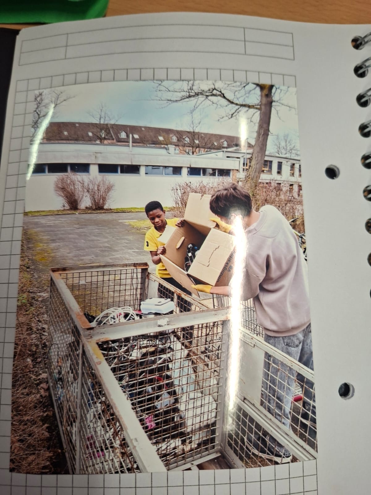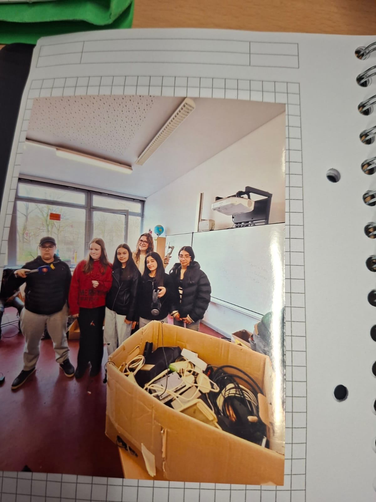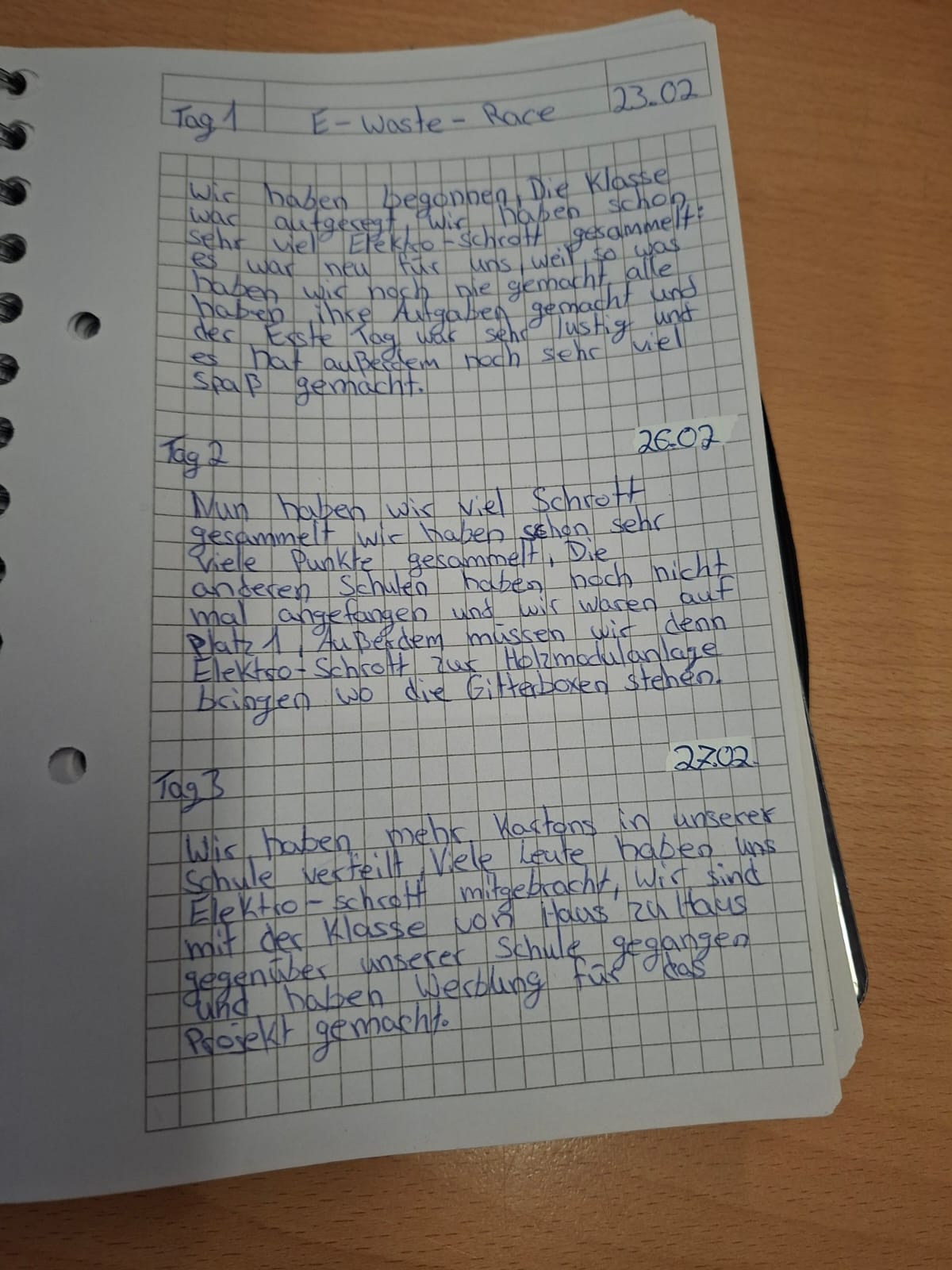 Tag 1: „Wir haben begonnen. Die Klasse war aufgeregt, wir haben schon sehr viel Elektroschrott gesammelt: es war neu für uns, weil so was haben wir noch nie gemacht. Alle haben ihre Aufgabe gemacht und der erste Tag war sehr lustig und es hat außerdem noch sehr viel Spaß gemacht.“