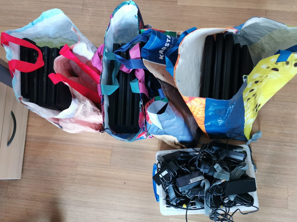 Das Lernen von Zuhause geht weiter. Doch was passiert, wenn es in einer Familie kein Handy bzw. Computer gibt oder viele Personen es teilen müssen? Vor einiger Zeit wurden der Kantschule 17 Notebooks gespendet. Dank Linux und LibreOffice sind diese nun einsatzbereit. Doch im Schrank in der Schule bringen diese nicht viel.Daher besteht für Familien der Lernenden der Kantschule die Möglichkeit, sich eins dieser Notebooks auszuleihen.