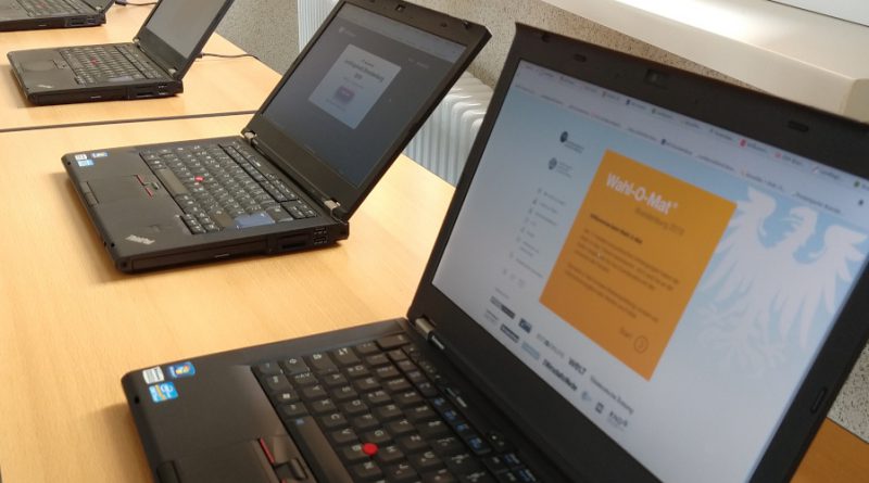 wiz computer 800x445Am 1.09.2019 findet die Landtagswahl in Brandenburg statt. Viele unserer Lernenden sind wahlberechtigt. Doch welche Partei soll gewählt werden? Viele Interessierte haben sich hierzu schon im Verbinder zwischen dem A- und B-Gebäude informiert. An insgesamt vier gespendeten Rechnern können Webseiten zur Informationsbeschaffung genutzt werden, wie z.B. Vergleichsseiten auf denen politische Thesen bewertet werden, mit den Meinungen der zur Wahl stehenden Parteien verglichen werden und eine prozentuale Übereinstimmung der eigenen Meinung mit der Meinung der Parteien ausgegeben wird.