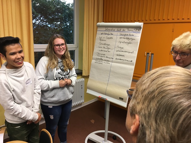 Uns hat an diesem Nachmittag/Abend gefallen, dass die Lehrer sich untereinander ausgetauscht haben und die Kommunikation miteinander funktioniert hat. Ebenso hat uns das Meinungsbild gefallen, bei dem man sich im Hinblick auf seine eigene Schule und das Thema „Integration“ einordnen sollte, sowie der Ausblick darauf, was man in Zukunft, gleich nach der Veranstaltung, durchsetzen will. Diese „Zeitreise“ war sehr interessant, da sich alle am Ende ein Ziel gesetzt haben.