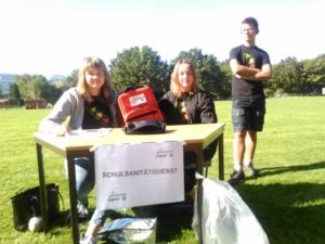 ,,Ich mache bei den Schulsanitätern mit, weil es meiner Meinung nach viel zu viele Leute gibt, die wegsehen, wenn jemand Hilfe braucht und keine Zivilcourage zeigen.“ So sieht es Melissa, eine der Schulsanitäterinnen an der Gotthard- Kühl-Schule. Mit ihr sind 17 weitere Schülerinnen und Schüler dabei und kümmern sich in der Schule und bei sportlichen Veranstaltungen um kleinere Verletzungen. Zudem haben sie auch ein Auge für Gefahrenquellen. ,,Herr xy, sagen sie dem Schüler bitte, er soll nicht auf den Baum klettern, wir brauchen hier wirklich keine Wirbelsäulentraumata.“Die Ausbildung übernimmt die Johanniter Jugend, in der Schule organisiert sich dir Gruppe selbst, sorgt für einen Dienstplan und einen gut bestückten Erste-Hilfe-Rucksack. So viel Einsatz zahlt sich aus, für jeden der Schulsanitäter persönlich und für die ganze Schule.