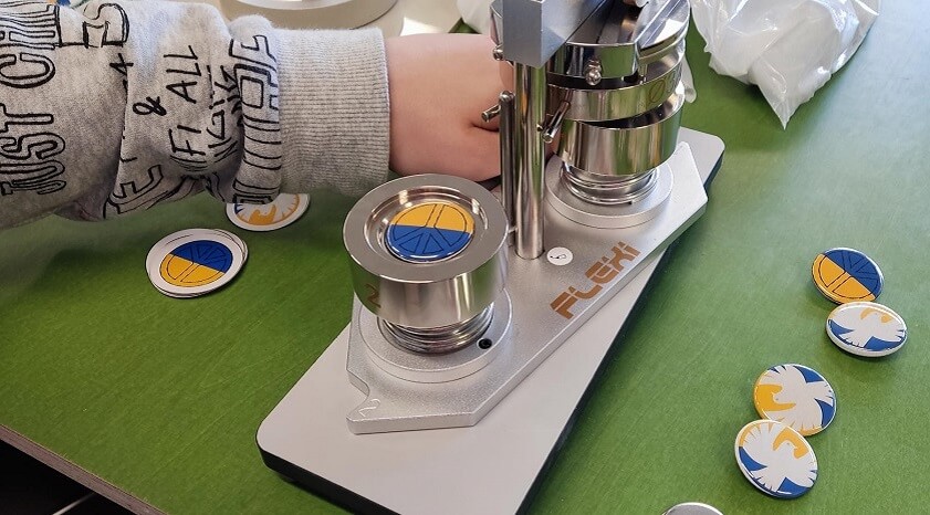 Die Produktion von Buttons mit diversen Friedenssymbolen für den guten Zweck läuft in der Makerspace-AG an. Bewegt von den Bildern aus dem Kriegsgebiet entschlossen sich die Schüler/innen im Makerspace etwas zu produzieren, damit wir ein sichtbares Zeichen für den Frieden & die Solidarität mit der ukrainischen Bevölkerung setzen können.