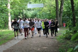 Die 5. und 6. Klassen liefen eine 428m lange Runde um den See, die Jahrgänge 7 – 12 legten Runden von 1,2km Länge durch das grüne Zentrum zurück. Die meisten Schüler:innen sowie auch einige Kolleg:innen waren engagiert dabei und erste Hochrechnungen ergaben einen vierstelligen Spendenbetrag.