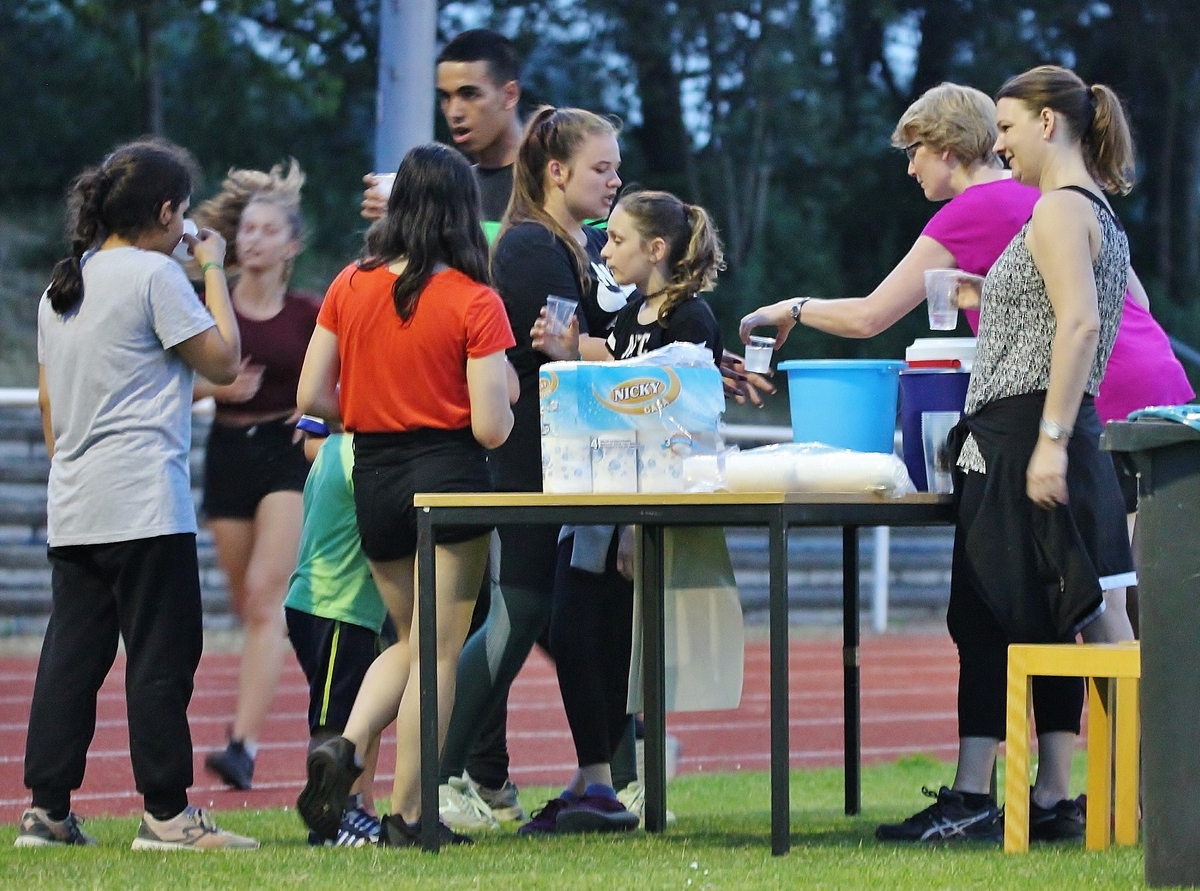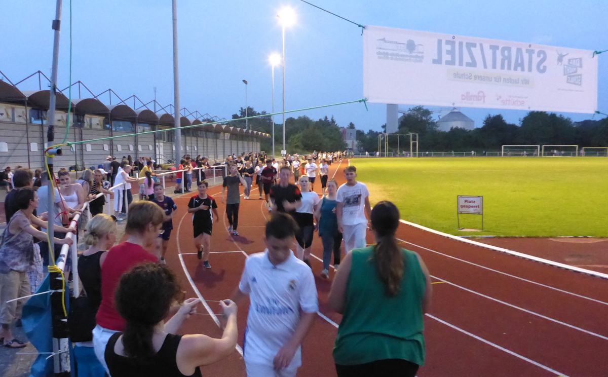 Idee: Einen Sponsorenlauf als Nachtlauf auf einem beleuchteten Sportplatz zu gestalten. Hintergrund: Viele Schüler nicht-deutscher Herkunft fasten derzeit und nehmen Essen und Trinken erst nach Sonnenuntergang zu sich. Das passte perfekt von der Sonnenuntergangszeit her.