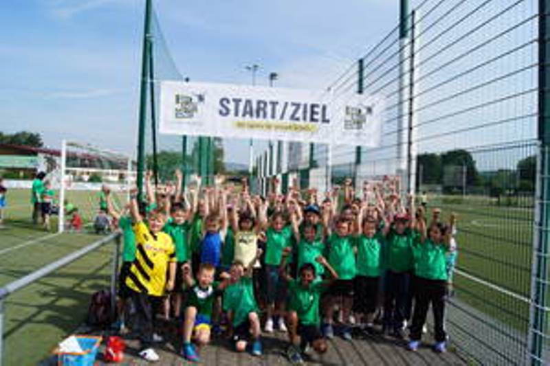 Am Freitag, den 22.09.2017 war es soweit, bei schönstem strahlendem Sonnenschein traten alle Schüler und Schülerinnen zu unserem Sponsorenlauf an. In den vorangegangen Wochen hatten die Kinder fleißig Sponsorinnen und Sponsoren gesucht, die bereit waren, entweder pro Runde einen Geldbetrag oder auch ohne Zielsetzung einen Fixbetrag zu spenden. Mit dem Geld sollen in der nächsten Zeit ein Smartboard sowie Pausenpielgeräte für unsere Schule gekauft werden. Die Kinder waren dann so motiviert, dass es immer neue Höchstleistungen gab, mindestens fünf Runden konnte jedes Kind nach 15 min Lauf (1./2. Schuljahr) bzw. 20 min Lauf (3./4. Schuljahr) erreichen. In jeder Klassenstufe wurden nach jedem Lauf die besten Jungs und die besten Mädchen für ihre Leistungen mit einer Gold-Medaille geehrt. Den Lauf-Rekord wurde mit einer Gesamt-Rundenzahl von 13 aufgestellt. Der Gesamtbetrag der Spenden wird noch ermittelt, aber natürlich erfolgt an dieser Stelle schon einmal ein DANKESCHÖN vorab. Für uns unfassbar viel Geld wurde gesammelt und gespendet. Das Engagement der Kinder und der Eltern bringt uns nicht nur einen riesigen Betrag, es zeigt auch, dass wir eine Schule sind, in der viel bewirkt und geschaffen wird. Und dies ist nur durch eine hervorragende Zusammenarbeit zwischen Schule und Elternhaus möglich.