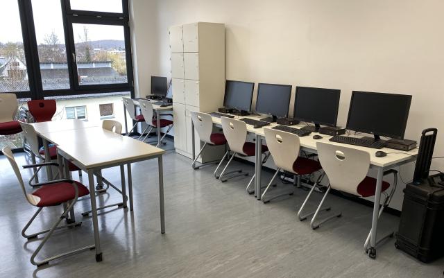 Die Räumlichkeiten auf den Jahrgangsebenen 8, 9, 10 waren schnell gefunden, erste Planungen nahmen schnell Gestalt an. Um zügig Arbeits- und Lernmöglichkeiten bereit zu stellen, verwendeten wir das entsprechend schon vorhandene Mobiliar und gestalteten drei Arbeitsbereiche, an denen Laptops aufgestellt wurden. Die Buchung der Räume sollte mittels eines entsprechenden Tools in iServ stattfinden.