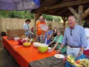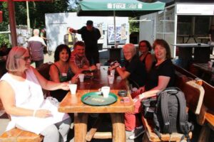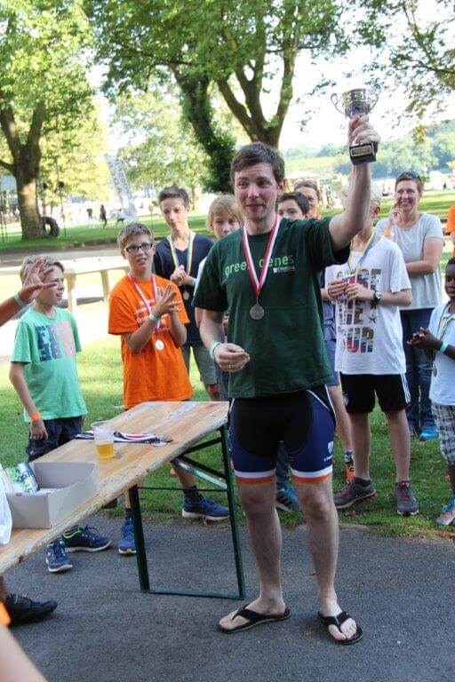 Neben der Freude am Radfahren wurde natürlich auch um die Höchstzahl von gefahrenen Runden gewetteifert – da traten besonders Prof. Sebastian Bauer, als Initiator des Rennens, und sein Mitarbeiter Dr. Thomas Mühlenberg ganz kräftig in die Pedale. Aber auch die Patienten schonten sich nicht. Ob jung oder alt, selbst Patienten, die vor gar nicht allzu langer Zeit eine schwere OP oder Chemo hinter sich gebracht haben, fuhren unglaublich engagiert mit. Für die Fahrer gab es am Beacheingang Getränke und Obst und das Team von Prof. Bauer zählte die gefahrenen Runden und spornte die Fahrer an. Und so wurden insgesamt unglaubliche 2.170 km gefahren. Symbolisch haben wir am Ende der Tour de Ruhr einen Scheck an Prof. Sebastian Bauer für die Translationale Sarkomforschung am Westdeutschen Tumorzentrum übergeben können – im Wert von 13.569 €. Dieses Geld wird dringend benötigt für Forschungsprojekte im Sarkombereich, die leider nur wenig Beachtung und Förderung erfahren so Prof. Bauer in seiner kleinen Dankesrede. Ein riesengroßes Dankeschön an alle Sponsoren, inbesondere an Holger Walterscheid, dem Chef vom seaside beach am Baldeneysee.