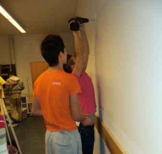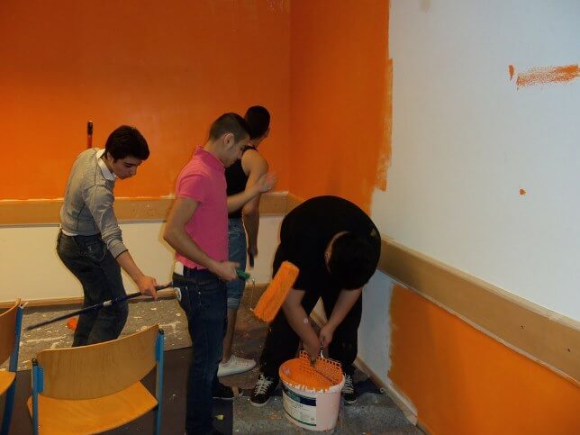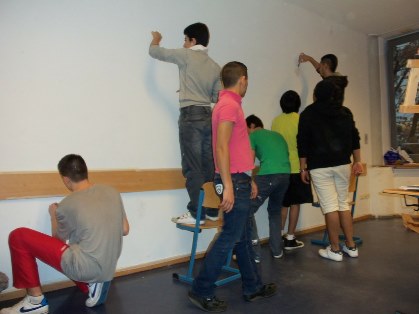 Die Idee unser Klasseninterieur zu wechseln hat uns Frau Dorow gegeben. Es ist zu unserem Projekt von „Das macht Schule“ geworden. Um das Projekt zu ermöglichen brauchten wir natürlich Geld. Das Geld hat uns die Schule gegeben. Wir haben einen Einkauf bei „Max Bahr“ gemacht. Zuerst haben wir mit der Klasse über die Farbe diskutiert. Nach zwei Stunden haben wir uns für Orange entschieden, denn unserer Meinung nach ist es die Farbe der Harmonie, die man für Konzentration benötigt. Danach haben wir uns in fünf Gruppen eingeteilt. Jede Gruppe hatte eigene Aufgaben. Die eine hat einen Bericht gemacht, die zweite machte den Einkauf, die dritte versorgte uns mit Essen, die vierte besorgte das Material vom Hausmeister und die fünfte räumte auf. Alle streichten die Klasse. Unsere Klassenlehrerin Frau Dorow hat uns geholfen. Unserem Hausmeister sind wir auch sehr dankbar, weil er uns Materialien gegeben hat, die wir für das Projekt brauchten.