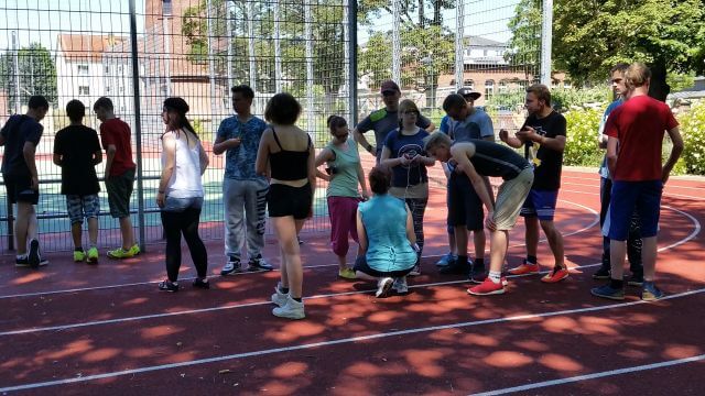 Am Tag des Sponsorenlaufes war es sehr heiß. Kurzzeitig gab es Überlegungen, den Lauf abzusagen. Aber konnten wir das den Kindern und Jugendlichen antun? Die Enttäuschung wäre sehr groß gewesen. Wir einigten uns auf eine zeitliche Begrenzung, um eine Überanstrengung zu vermeiden. Ich übernahm die Moderation und musste feststellen, dass es in meinem Wortschatz kaum noch Begriffe und Superlative gab, die die Leistungen der Kinder und Jugendlichen beschreiben konnte. Schülerinnen und Schüler, die sonst den Sportunterricht verweigern, wuchsen über sich hinaus. Wir begrenzten die Zeit auf jeweils 1 Stunde für jeden Durchgang. Viele waren enttäuscht, dass sie aufhören mussten. Aber die Verantwortung wollten und konnten wir nicht übernehmen.