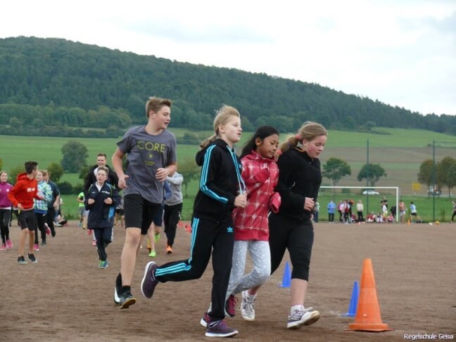 Der Kreativität der Schüler waren dabei keine Grenzen gesetzt. Wichtig war nur, dass der Sponsor sich bereit erklärte, einen freiwilligen Betrag für jede gelaufene Runde zu zahlen. Was der Sponsoren bereit war pro Runde zu zahlen, konnte er selbst festlegen. Einige Sponsoren haben auch von vornherein einen Festbetrag für die Teilnahme am Lauf mit den Schülern vereinbart. Am Lauf beteiligten sich alle Schüler, ob sie nun Sponsoren gefunden hatten oder nicht. Damit sollte unter anderem das Zusammengehörigkeitsgefühl der Schüler gestärkt werden. Gelaufen wurde in zwei Gruppen. In jeweils einer halben Stunde, rund um das Kleinsportfeld in Geisa galt es so viele Runden wie möglich zu absolvieren. Das Sportfeld war extra für den Lauf mit farbigen Kegeln markiert worden, so dass die einzelnen Klassen rund um das Feld versetzt starten konnten und sich so das Läuferfeld gut verteilte. „Wer nicht mehr laufen kann, der walkt einfach weiter“, animierte Sportlehrerin Ilona Güth die Schüler zu Höchstleistungen. Die 240 Schüler der Regelschule liefen nach A- und B-Klassen getrennt. Während die Parallelklasse gelaufen ist, haben die gerade nicht am Lauf beteiligten Schüler die Runden ihrer Schulkameraden gezählt. Dazu wurden auf extra angefertigten Laufkarten die absolvierten Runden abgestrichen. Das Ergebnis jedes einzelnen Läufers wurde am Ende in der eigenen Sponsorenkarte vermerkt. Mit dieser suchen die Schüler in den nächsten Tagen ihre Unterstützer auf und lassen sich das erlaufene Geld auszahlen. Ganz gesund war auch die Versorgung der jungen Sportler: statt Bratwürsten gab es in diesem Jahr knackige Äpfel und Mineralwasser.
