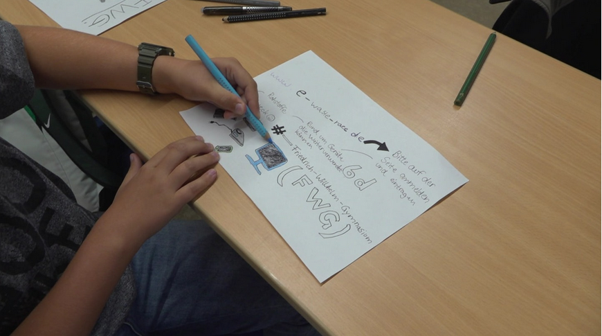 Alles begann mit einem Besuch von Svenja von Wrangell, die für die Initiative „Das macht Schule“ in vielen Städten Deutschlands E-Waste-Races organisiert. Sie erklärte uns was Elektroschrott eigentlich ist und wie und was wir sammeln sollten. Wussten sie eigentlich, dass ein Handy aus 45% Metallen besteht? Diese Metalle werden zum Schluss von der ART aus den Geräten entnommen und für neue wiederverwendet. Die Reste werden dann auf richtige Weise entsorgt. Außerdem wurde uns erklärt, wie das mit den Punkten funktioniert, die die am Wettlauf teilnehmenden Klassen gewinnen können.