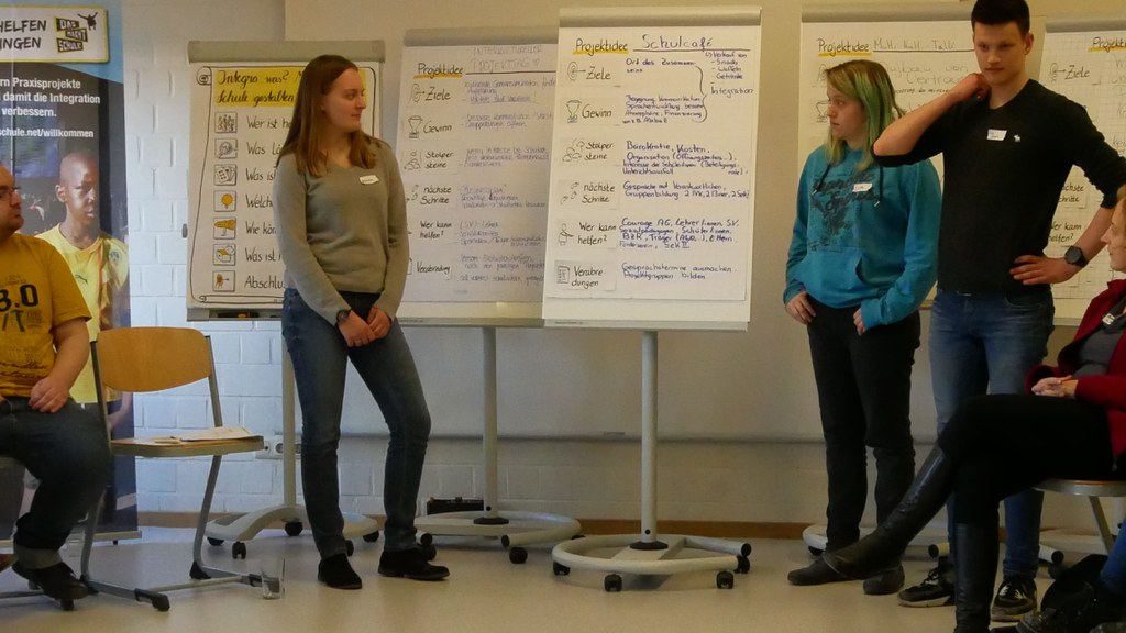 Einen ganzen Nachmittag haben sich 26 Schüler und Lehrer aus verschiedenen Schulen mit der Frage „Wie lässt sich der Alltag an meiner Schule noch integrativer gestalten?“ auseinandergesetzt und dazu spannende Projektideen entwickelt. Jutta Buckhorst, Abteilungsleiterin am Berufskolleg Lehnerstraße, fand den Workshop sehr aufschlussreich und produktiv. Für sie war es wertvoll, Einblicke in die Bemühungen anderer Schulen beim Thema Integration zu erhalten. Außerdem fand sie besonders toll, dass in der kurzen Zeit so interessante und vor allem umsetzbare Ergebnisse entwickelt wurden. Die professionelle Moderation und das große Engagement der Teilnehmenden waren sicherlich wichtige Faktoren für den Erfolg der Veranstaltung.
