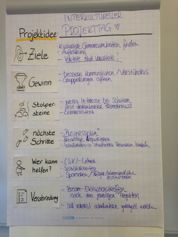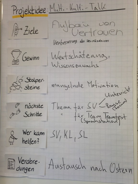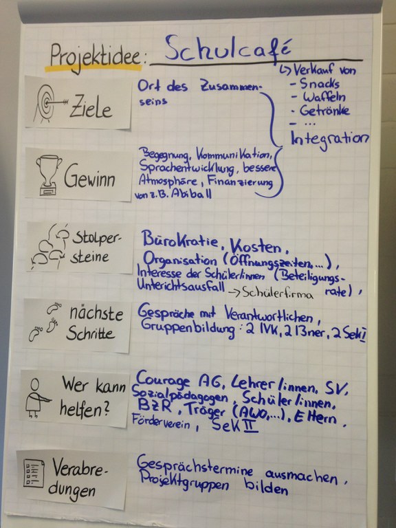 Die Zusammenarbeit von Schülern und Lehrkräften hat auf Anhieb super funktioniert. „Ich fand das einfach klasse!“, meint Frau Buckhorst. Auch die Schulleiterin des Berufskollegs Lehnerstraße, Roswitha Neumann-Weber, findet: „Es ist schön zu sehen, wie viele gute Ideen durch die Zusammenarbeit […] entstehen können.“ Dieses Projekt zeigt, dass die Einbindung von Schülern zur Lösung von wichtigen Herausforderungen an der Schule ein großes Potential hat. Jutta Buckhorst ist sehr zuversichtlich, dass die vier Projektideen, die in Kleingruppen entwickelt wurden, auch ihre Umsetzung finden. Zwar sind dazu noch einige Treffen und Absprachen nötig, aber es gab genug motivierte Teilnehmer, die daran weiterarbeiten werden.