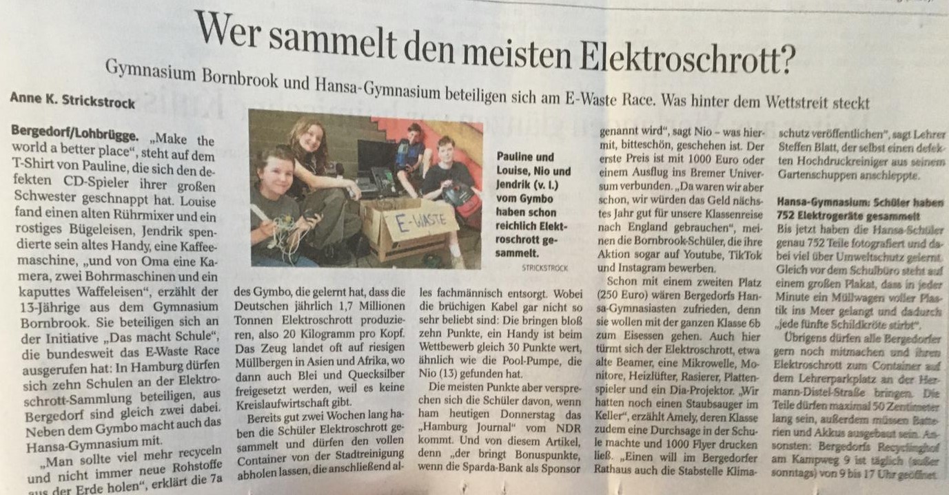 E-Waste-Race: AvH-Schüler sammeln Elektroschrott aus Harburg